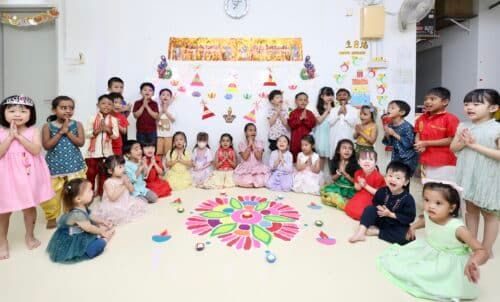 Murid Tadika Ilmu kualiti Bandar Seri Coalfields, Sungai Buloh, dari pelbagai bangsa meraikan sambutan Deepavali di sekolah mereka pada 29 Oktober 2024.