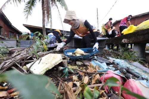 Sukarelawan Anis Adibah Anuar Alsadat,26 mengutip sampah di sekitar Kampung Bagan Sungai Yu melalui Program Rejuvenasi di Kampung Bagan Sungai Yu, Kuala Selangor pada 5 Oktober 2024.