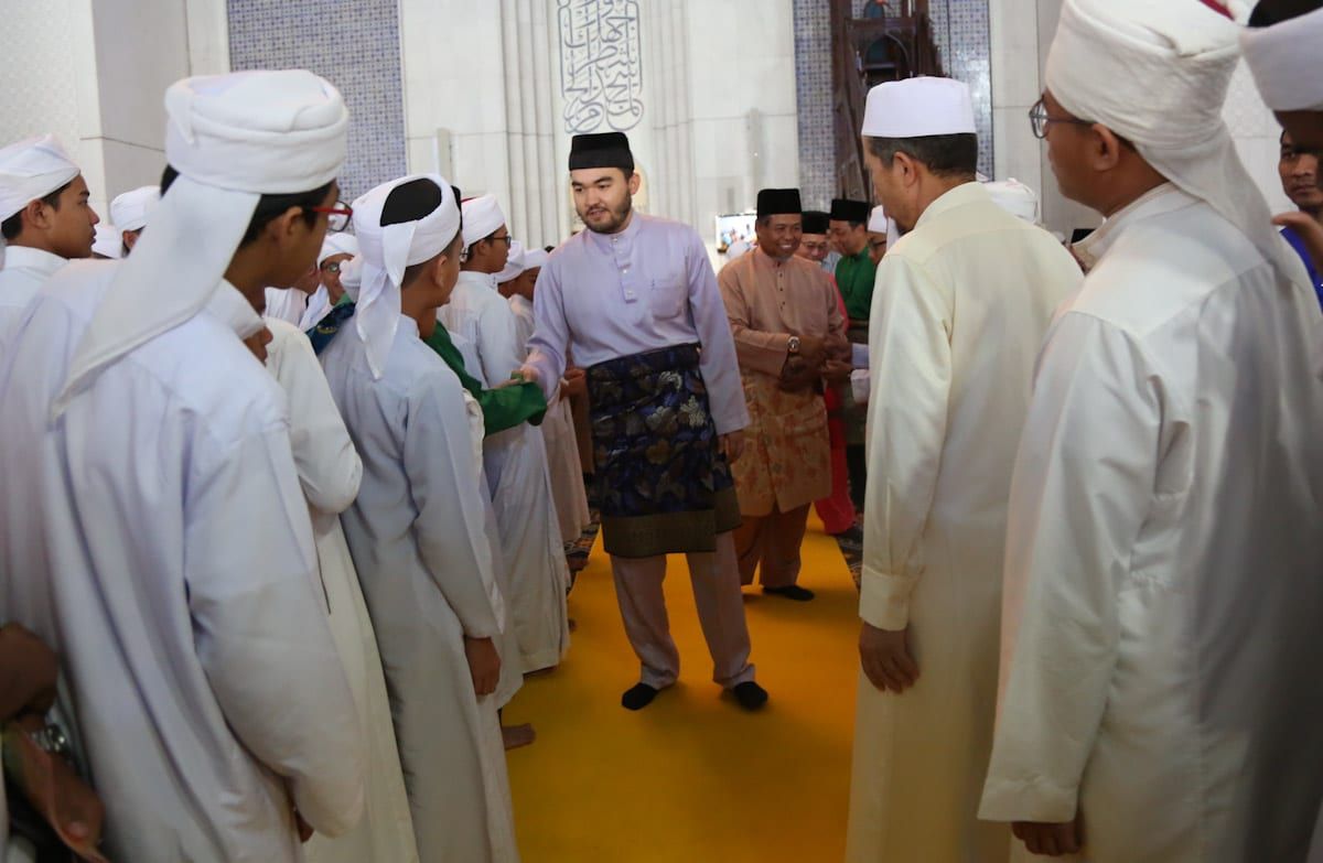 Duli Yang Teramat Mulia (DYTM) Raja Muda Selangor, Tengku Amir Shah bersalaman dengan jemaah selepas menunaikan Solat Jumaat pada Majlis Bacaan Yasin, Tahlil dan Doa Selamat sempena Hari Kebangsaan Ke-62, di Masjid Sultan Salahuddin Abdul Aziz Shah.