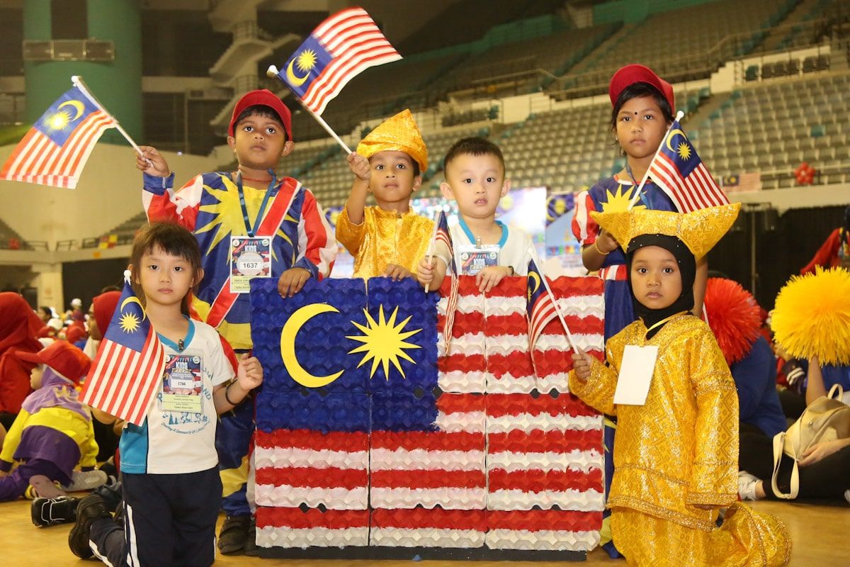 Kanak-kanak dari pelbagai bangsa bergambar memegang bendera Malaysia pada Program Kids Parade Sambutan Hari Kebangsaan Peringkat Negeri Selangor di Stadium Malawati, Shah Alam.11 September 2019.Foto REMY ARIFIN/SELANGORKINI.