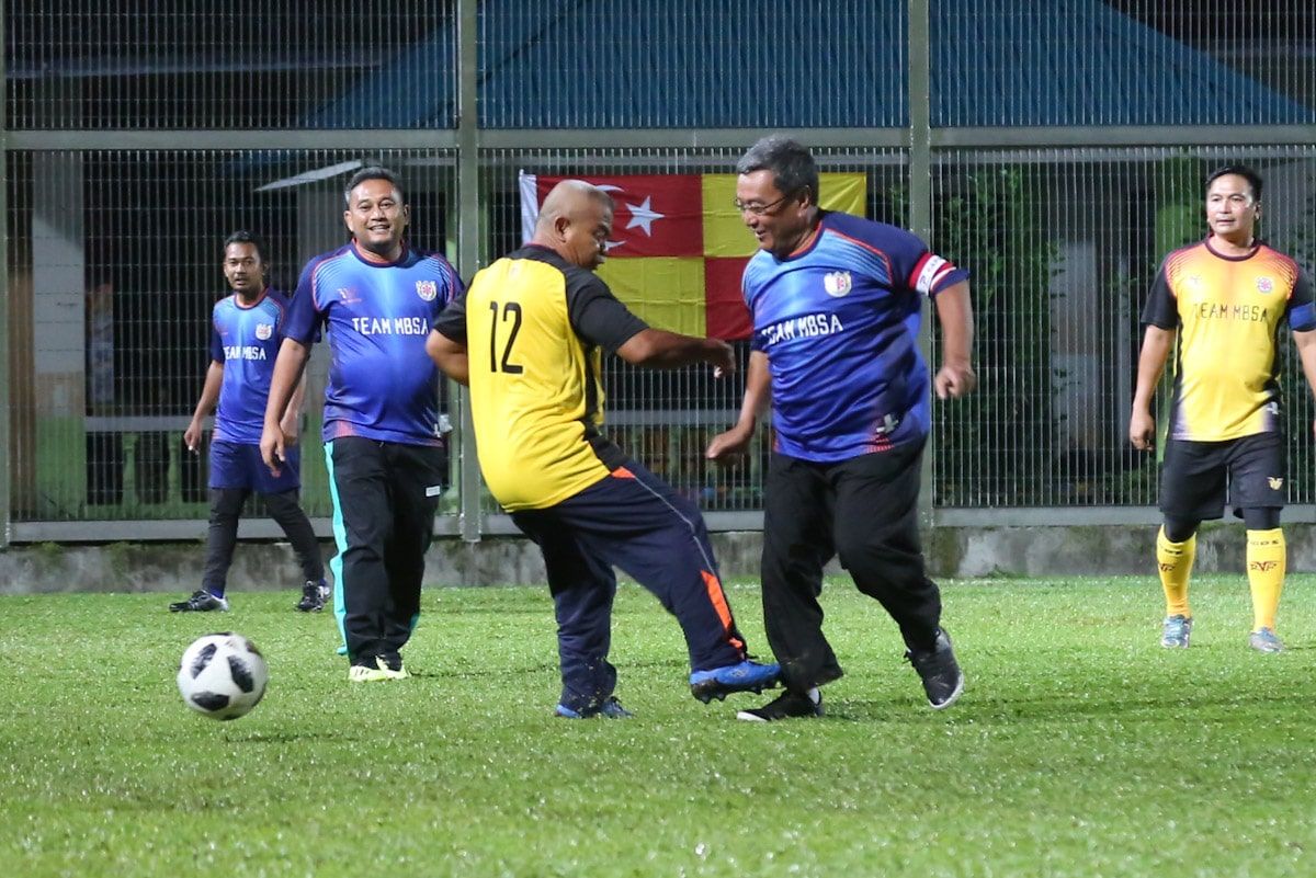 Datuk Bandar Shah Alam, Dato' Haris Kasim beraksi ketika perlawanan persahabatan pada Majlis Perasmian Stadium Mini MBSA Paya Jaras, Sungai Buloh.