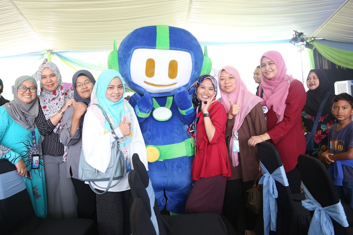 Peserta program bergambar bersama Adiwira Air Selangor pada Majlis Pelancaran Menjadi Wira Penjimat Air di Padang Awam Taman Batu Caves, Selayang.15 Oktober 2019.