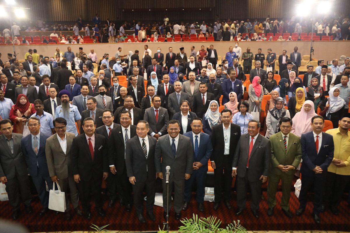 EXCO Perindustrian dan Perdagangan Dato' Teng Chang Khim (dua,kiri), Duta Besar Amerika Syarikat Brian D Mc Feeters (dua,kanan), Ketua Pegawai Eksekutif (CEO) Perbadanan Teknologi Maklumat Ekonomi Digital Selangor (Sidec) Yong Kai Ping (kiri) serta CEO Invest Selangor Berhad Dato' Hasan Azhari Idris (kanan) memotong riben sebagai gimik perasmian ruang kerja warga Selangor Sandbox di Pusat Kreatif Digital Selangor, i-City Shah Alam pada 14 Februari 2022.