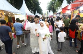 Pasangan pengantin tidak melepaskan peluang ke Festival Makanan Mega Selangor di Dataran Kemerdekaan Shah Alam pada 1 Mei 2025.