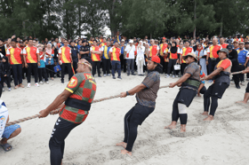 Duli Yang Maha Mulia (DYMM) Sultan Selangor Sultan Sharafuddin Idris Shah Alhaj dan DYMM Tengku Permaisuri Selangor Tengku Permaisuri Hajah Norashikin berkenan menyaksikan pertandingan tarik tali selepas Larian Kita X Pesta Kelaut@Pantai Kelanang di Kuala Langat pada 20 Julai 2025.