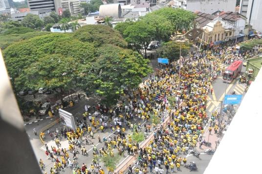 10.28 pagi: Kira-kira 1000 orang berbaju kuning berhampiran BAR Council Jalan Loke Yew. Terdapat juga 300 orang polis berkawal. Helikopter berlegar-legar, orang ramai bersorak setiap kali helikopter terbang rendah.