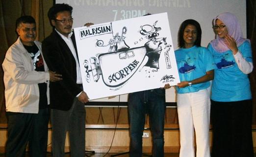 Lelongan lakaran kartun yang memaparkan kapal selam scorpene membawa 'rakyat Malaysia' sambil memegang 'C4' dan sedang cuba merempuh lelaki berlabel 'Najib' pula telah mendapat bidaan tertinggi bernilai RM5,000.