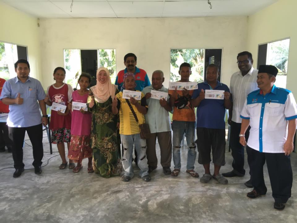 A total of 7 Orang Asal families from Sungai Rambai, Pulau Carey received aid from the State Government following the flood incident in their area.