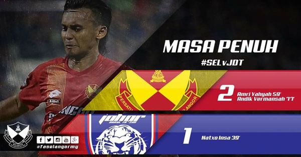 சிலாங்கூர் கால்பந்து அணி ஜோகூர் டாருல் தாக்ஸிம் (ஜேடிதி) அணியை செலாயாங் அரங்கில் நடைபெற்ற லீக் போட்டியில் 2-1 என்ற கோல் கணக்கில் வெற்றி பெற்றது. ஆனாலும் ஜெடிதி முதல் கோலை 39-வது நிமிடத்தில் நாட்ஸ்கோ இன்ஸா மூலம் புகுத்தியது. சிலாங்கூர், மேலும் ஆட்டத்தை வெளிப்படுத்தி, இரண்டாவது பாதியில் 59-வது நிமிடத்தில் அம்ரி யாயா மூலம் கோலாக்கி சமநிலை படுத்தியது.