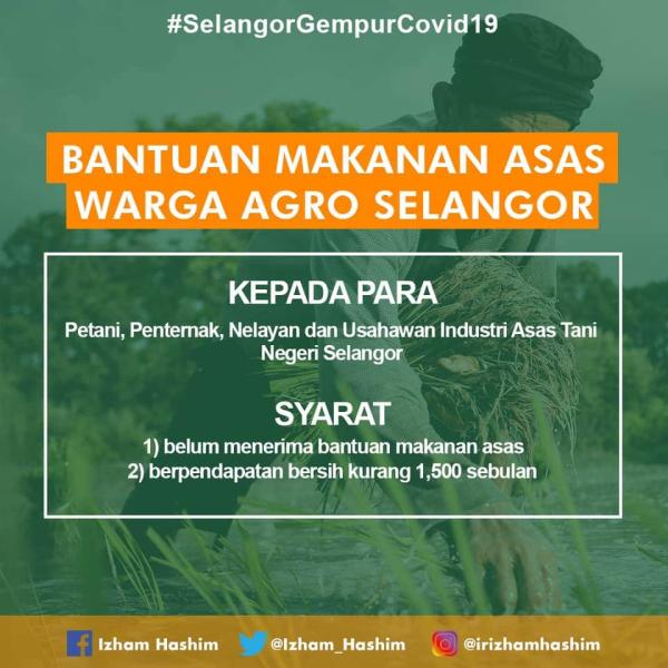 மாதம் 1,500 ரிங்கிட்டிற்கும் குறைவான வருமானம் ஈட்டும் சிலாங்கூர் விவசாய குடிமக்கள், மாநில அரசாங்கத்தின் அடிப்படை உணவு உதவிக்கு விண்ணப்பிக்கத் தொடங்கலாம் என்று விவசாயத் துறை ஆட்சிக் குழு உறுப்பினார் இஸாம் ஹாஷிம் கூறினார். சிலாங்கூரின் 2ஆம் கட்ட பரிவுமிக்க உதவித் திட்டத்தில் இடம் பெற்றுள்ள இதற்கு விவசாயிகள், கால் நடை வளர்ப்பவர்கள், மீனவர்கள் மற்றும் விவசாயம் சார்ந்த தொழில்முனைவர்கள் விண்ணப்பிகலாம் என்றார் அவர்.