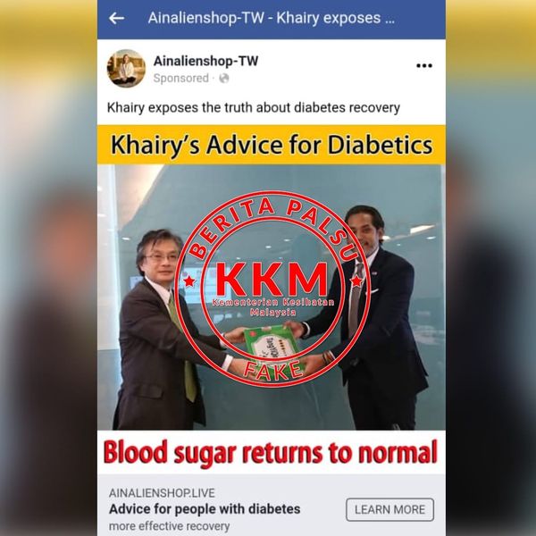 சுகாதார அமைச்சர் கைரி ஜமாலுடினின் இரத்த சர்க்கரை இயல்பு நிலைக்குத் திரும்பும் ' என்ற தலைப்பில், மாற்றியமைக்கப்பட்ட படத்தைப் பயன்படுத்தி பொதுமக்களை குழப்ப முயற்சிக்கும் Ainalienshop-TW பேஸ்புக் பக்கத்தின் நடவடிக்கைகள் குறித்து விளக்கமளிக்கும் வகையில் இன்று பேஸ்புக் வழியாக சுகாதார அமைச்சகம் அறிக்கை ஒன்றை வெளியிட்டுள்ளது.