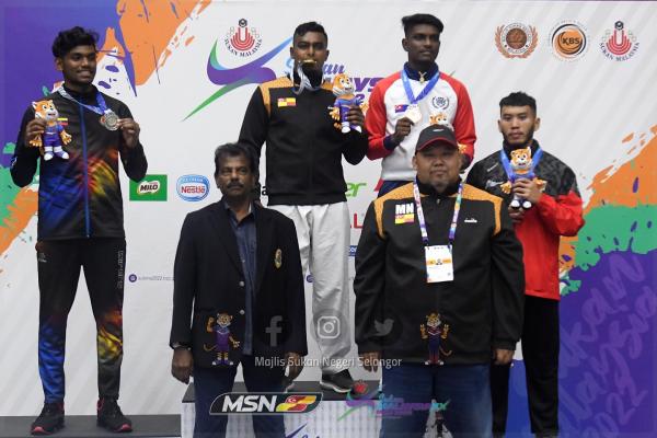இந்த நிகழ்வின் வெள்ளிப் பதக்கத்தை கூட்டரசு பிரதேச தடகள வீரர் வி லோகன் வென்றார், வெண்கலத்தை சரவாக் தடகள வீரர் வின்சென்ட் கார்ஃபெலோ அனாக் டிசென் மற்றும் ஜோகூரைச் சேர்ந்த பி கார்த்திகேயன் ஆகியோர் பெற்றனர்.