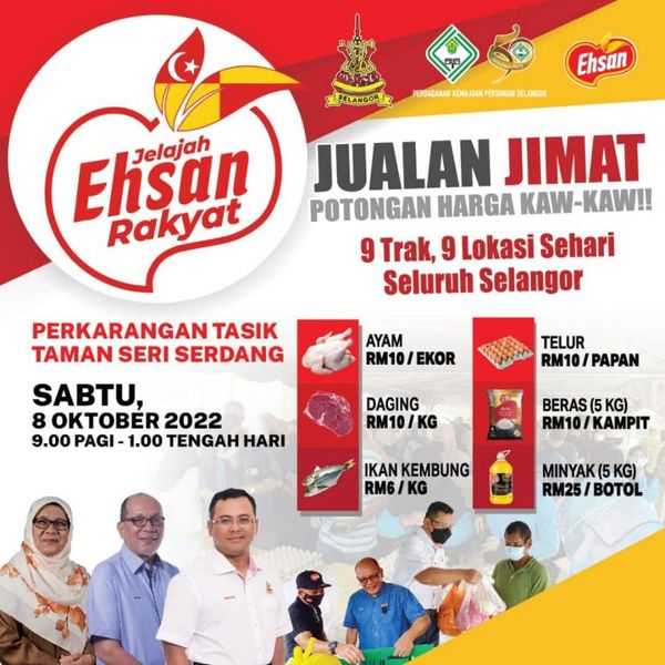 இந்த மலிவு விற்பனை காலை 9.00 மணி முதல் பிற்பகல் 1.00 மணி வரை நடைபெறும் என்று ஸ்ரீ செர்டாங் தொகுதி சேவை மையம் தனது பேஸ்புக் பதிவில் கூறியது.
