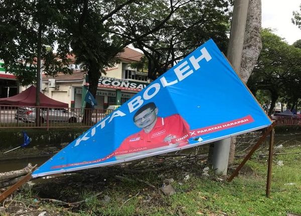 கிள்ளான், நவ 19 – காப்பார் தொகுதியில் நேற்றிரவு வீசிய பலத்த காற்றின் காரணமாக அரசியல் கட்சி வேட்பாளர்களின் குறைந்தது ஐந்து ராட்சத பிரச்சாரப் பலகைகள் சரிந்து விழுந்ததை ஜாலான் காப்பார்-கிள்ளானில் மதியம் 3.20 மணியளவில் சிலாங்கூர்கினி நடத்திய ஆய்வில் தெரிய வந்தது.