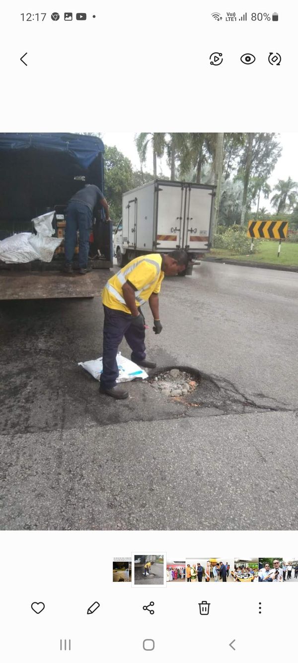 மன்றத் தரப்பினர் அச்சாலையில் காணப்பட்ட குழிகளை மூடி சீரான