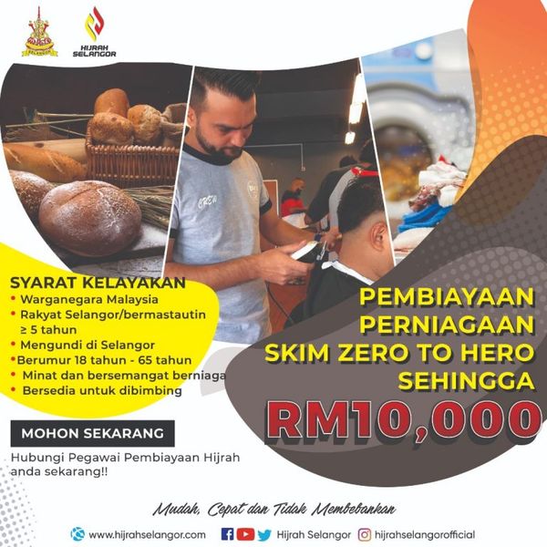 "ஜீரோ டு ஹீரோ திட்டத்தின் நிதியுதவியின் மூலம் ஹிஜ்ரா சிலாங்கூரில் தொழில் தொடங்க விரும்பும் சிலாங்கூர் மக்களுக்காக ஒரு சிறப்பு வணிக ஸ்கிமை வழங்குகிறது.