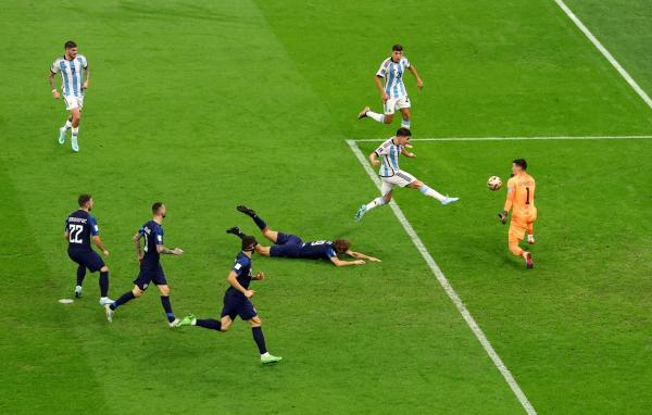 69-வது நிமிடத்தில், குரோஷிய தற்காப்பு கோட்டைக் கடந்து மெஸ்ஸியின் திறமையான பாஸில் அல்வாரெஸ் மீண்டும் ஒரு கோல் அடித்தார்.