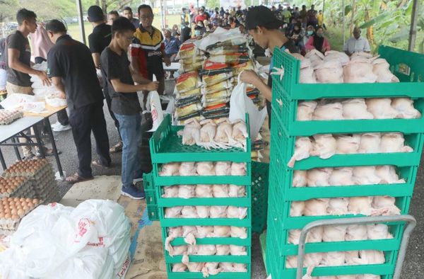 இந்த ஜெலாஜா ஏசான் ராக்யாட் விற்பனையில் கோழி 10 வெள்ளிக்கும் உறைய வைக்கப்பட்ட இறைச்சி ஒரு பாக்கெட் 10 வெள்ளிக்கும் பி கிரேட் முட்டை ஒரு தட்டு 10 வெள்ளிக்கும் கெம்போங் மீன் ஒரு பாக்கெட் 6 வெள்ளிக்கும் 5 கிலோ சமையல் எண்ணெய் 25 வெள்ளிக்கும் 5 கிலோ அரிசி 10 வெள்ளிக்கும் விற்கப்படுகிறது.