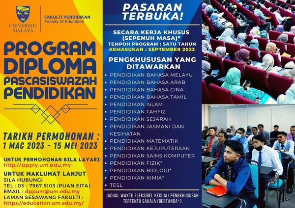 மேலும் கல்வி சேவை ஆணையத்தின்(suruhanjaya perkhidmatan pendidikan) வழியும் எப்போது வேண்டுமானலும் முன்கூட்டியே விண்ணப்பங்களைச் செய்யலாம். மலாயாப் பல்கலைக்கழகத்தின் கல்வி புலத்தில் ஓர் ஆண்டு கல்வி பயின்று தேர்ச்சி பெறும்