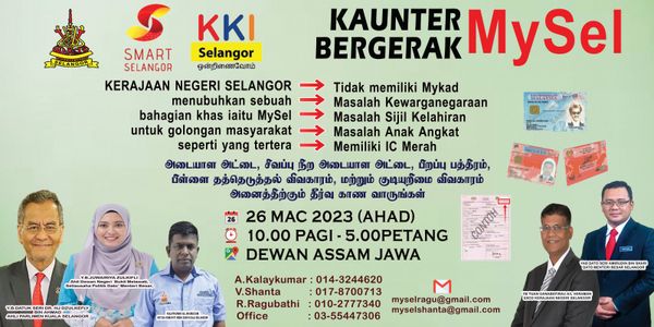 கோலசிலாங்கூர், மார்ச் 23 ;- சிலாங்கூர் மாநில அரசின் மைசெல் இயக்கம் கோல சிலாங்கூர் நாடாளுமன்ற மற்றும் சட்டமன்ற உறுப்பினர்கள் மற்றும் அரசு சாரா அமைப்புகளின் உதவியுடன் அடையாளப் பத்திர விவகாரத்திற்கு தீர்வு காண மாபெரும் இயக்கத்தை நடத்துகிறது.