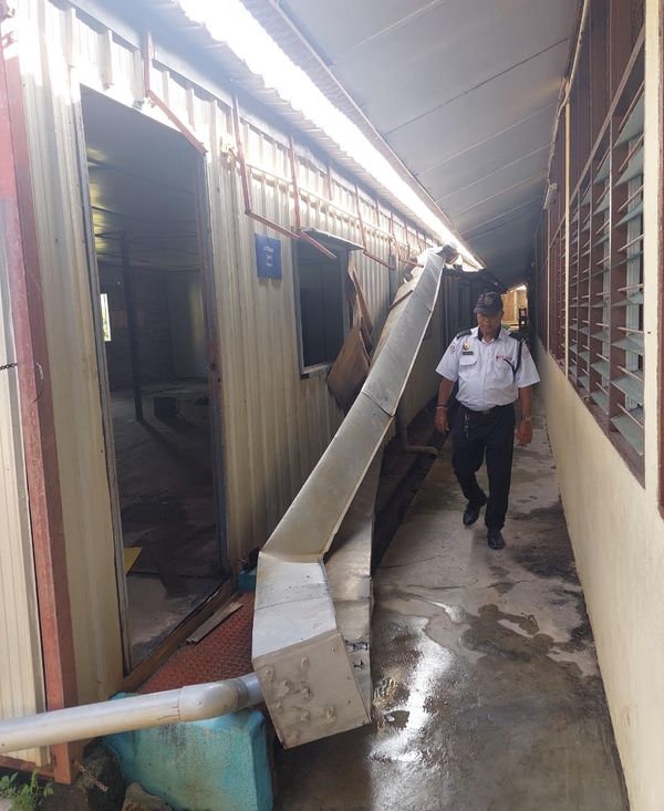 கூரைகள் மற்றும் உட்கூரைகள் உடைந்ததோடு மரம் விழுந்து பள்ளியின்