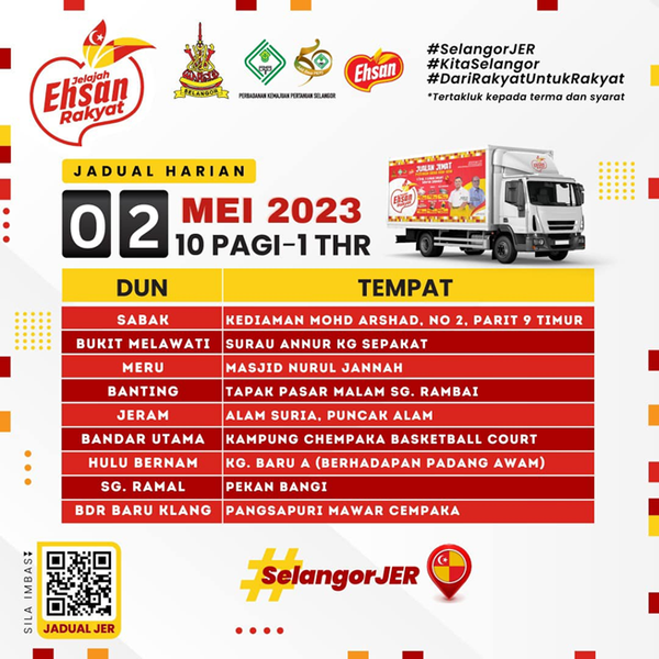 சிலாங்கூர் விவசாய மேம்பாட்டு கழகம் (PKPS) ஒன்பது மாநில சட்டமன்றங்கள் (DUN) உள்ளடக்கிய நாளைக்கான எஹ்சான் ரக்யாட் சுற்றுப்பயணத்தை அறிவித்தது.