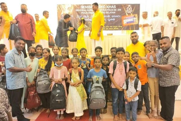 அந்த வகையில் அண்மையில் அனுசரிக்கப்பட்ட 216வது போலீஸ் தினத்தை முன்னிட்டு தென் கிள்ளான் மாவட்ட காவல் துறையின் இந்திய அதிகாரிகள் மற்றும் உறுப்பினர்கள் இம்மாவட்டத்திலுள்ள ஐந்து தமிழ்ப் பள்ளிகளில் பயிலும் 100 மாணவர்களுக்கு புத்தகப் பை மற்றும் பள்ளி உபகரணப் பொருள்ளை அன்பளிப்பாக வழங்கினர்.