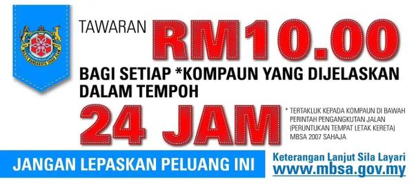 ஷா ஆலம், ஜூலை 4: பார்க்கிங் தொடர்பான சம்மன்களை, அனுப்பப்பட்ட 24 மணி நேரத்திற்குள் செலுத்தும் பொதுமக்களுக்கு அபராதத் தொகை RM10ஆக ஷா ஆலம் மாநகராட்சியால் (எம்பிஎஸ்ஏ) குறைக்கப்பட்டுள்ளது