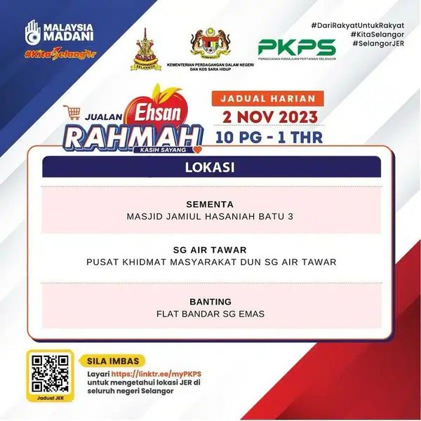 (பந்திங் தொகுதி) ஆகிய இடங்களில் விற்பனை நடைபெறும்.