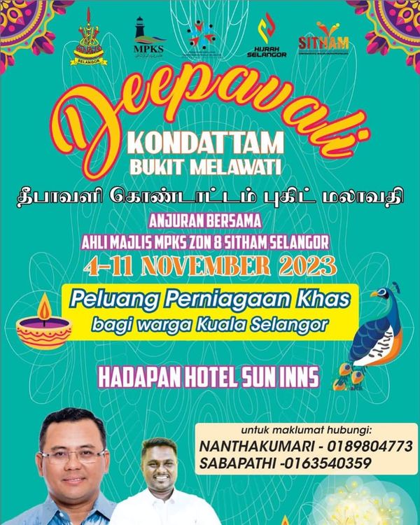 புக்கிட் மெலாவத்தி தீபாவளிக் கொண்டாட்டம் எனும் இந்த விற்பனைச் சந்தை இம்மாதம் 4ஆம் தேதி தொடங்கி 11ஆம் தேதி வரை ஹோட்டல் சன் இன்ஸ் எதிரே நடைபெறும்.