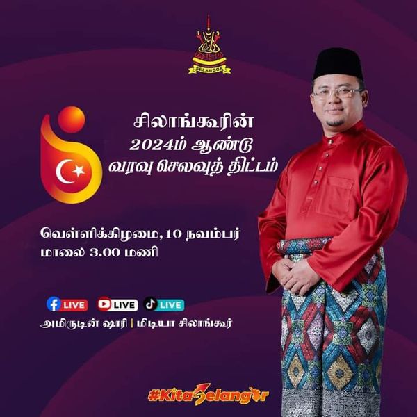 மந்திரி பெசாரின் பட்ஜெட் தாக்கல் நிகழ்வு சிலாங்கூர் டிவி, மீடியா சிலாங்கூர் பேஸ்புக் மற்றும் அமிருடின் ஷாரி பேஸ்புக் வாயிலாக நேரடியாக ஒளிபரப்பு செய்யப்படும்.