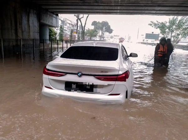நிலையத்தின் முன் ஏற்பட்ட திடீர் வெள்ளத்தால், தாங்கள் ஓட்டிச் சென்ற கார்களில்