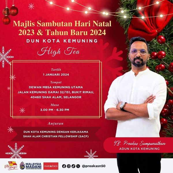 கிறிஸ்துமஸ் பெருநாள் மகிழ்ச்சியை தொகுதி மக்களோடு பகிர்ந்து கொள்ளும் அதே வேளையில் புத்தாண்டை புதிய நம்பிக்கையுடன் வரவேற்கும் நோக்கில் நடத்தப்படும் இந்த உபசரிப்பு நிகழ்வுக்கு ஷா ஆலம் கிறிஸ்டியன் ஃபெலோஷிப் அமைப்பு ஏற்பாட்டு ஆதரவை வழங்கியுள்ளது.
