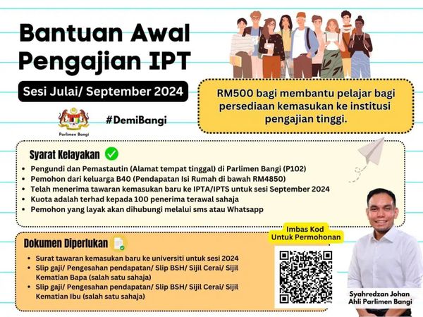“ஜூலை/செப்டம்பர் 2024 அமர்வுக்கு பொது அல்லது தனியார் பல்கலைக்கழகங்களில் இடம் கிடைத்த பாங்கி நாடாளுமன்ற மாணவர்களுக்கு உதவ நாங்கள் முன்முயற்சி எடுத்து வருகிறோம்.