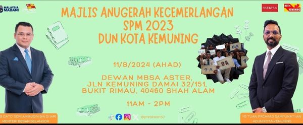 கோத்தா கெமுனிங் தொகுதி சேவை மையத்தின் ஏற்பாட்டில் நடைபெறும் இந்நிகழ்வுக்கு சட்டமன்ற உறுப்பினர் பிரகாஷ் சம்புநாதன் தலைமையேற்று மாணவர்களைச் சிறப்பிப்பார் என்றும் அவர் குறிப்பிட்டார்.