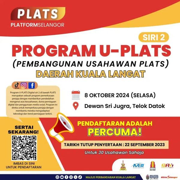 இது சிலாங்கூர் பிளாட்ஃபார்ம் தொழில்முனைவோருக்கு (பிளாட்ஸ்) டிஜிட்டல் முறையில் வணிகங்களை மேம்படுத்துவதற்கான இலவச வழிகாட்டுதல் திட்டமாகும்.
