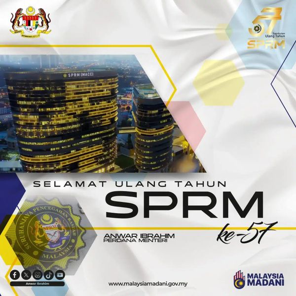 கோலாலம்பூர், அக் 1: மலேசிய ஊழல் தடுப்பு ஆணையத்தின் (எம்ஏசிசி) 57 வது ஆண்டு நிறைவை முன்னிட்டு பிரதமர் டத்தோஸ்ரீ அன்வார் இப்ராஹிம் வாழ்த்து தெரிவித்தார்.
