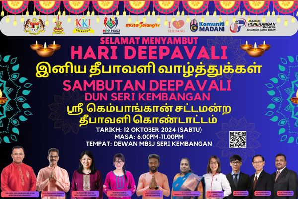 ஷா ஆலம், அக்.10 - ஶ்ரீ கெம்பாங்கான் சட்டமன்றத் தொகுதியின் தீபாவளி பொது உபசரிப்பு இம் மாதம் 12ஆம் தேதி சனிக்கிழமை நடைபெறவுள்ளது.