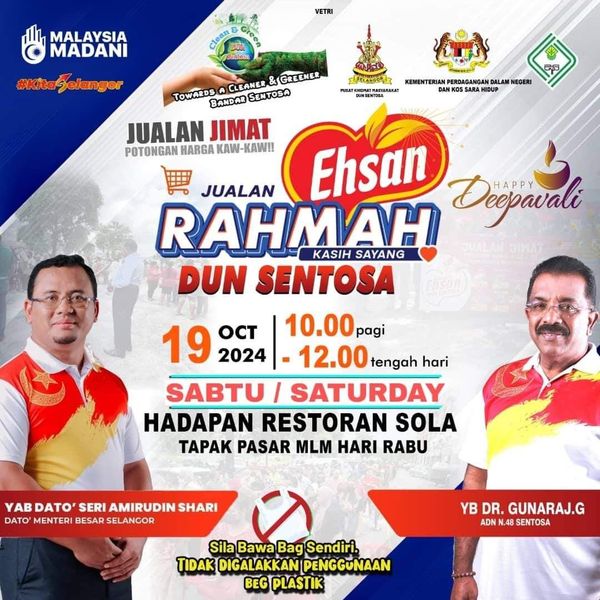 ஷா ஆலம், அக். 19- தீபாவளியை முன்னிட்டு செந்தோசா சட்டமன்றத்