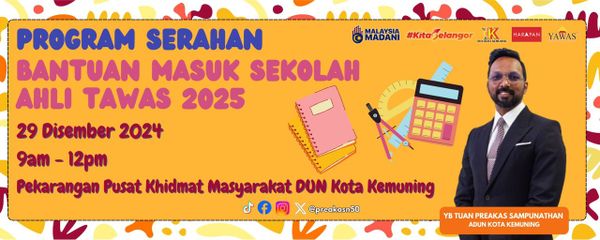 ஷா ஆலம், டிச 27: எதிர்வரும் 2025 ஆம் ஆண்டுக்கான கோத்தா கெமுனிங் தொகுதி அளவில் பள்ளி நுழைவு உதவியை வழங்கும் நிகழ்வு எதிர்வரும் ஞாயிறு அன்று நடைபெறும்.