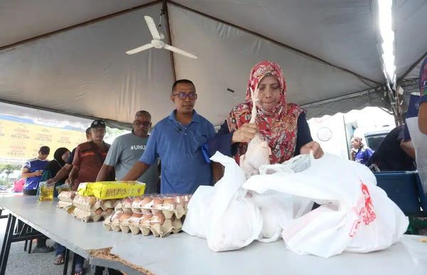 இந்த மலிவு விற்பனையில் ஒரு கோழி 12.00 வெள்ளிக்கும், ஒரு தட்டு பி