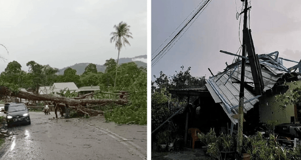 பலத்த புயல் காற்றினால் 10 மரங்கள் வேரோடு சாய்ந்தன. எனினும், அசம்பாவிதம் எதுவும் ஏற்படவில்லை.