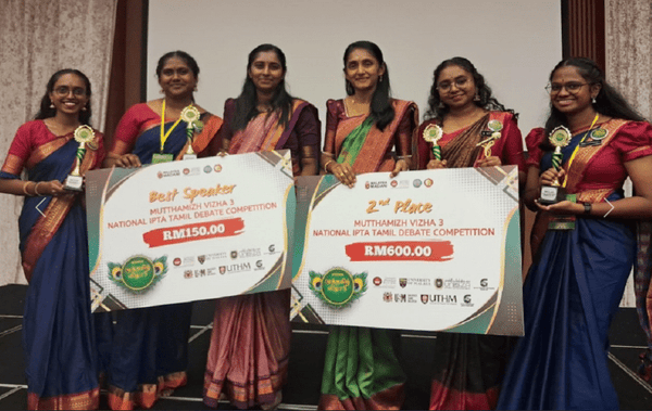 சிறந்த பேச்சாளர் எனும் விருதை, துவான்கு பைனூனின் ஆசிரியர் கல்விக் கழக தமிழ்த்துறை பயிற்சி ஆசிரியர்கள் கனகேஷன் கணேஷன் மற்றும் நித்யா மதனா தட்டிச் சென்றனர்.