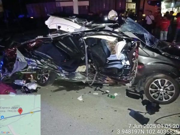 பெரேடுவா பேஸ்ஸாமற்றும் டொயோட்டா அல்பார்ட் சம்பந்தப்பட்ட இந்த விபத்து நேற்று நள்ளிரவில் நிகழ்ந்ததாக பகாங் மாநில தீயணைப்பு மற்றும் மீட்புத் துறையின் இயக்குநர் முகமது ரஸாம் தாஜா ரஹீம் கூறினார்.