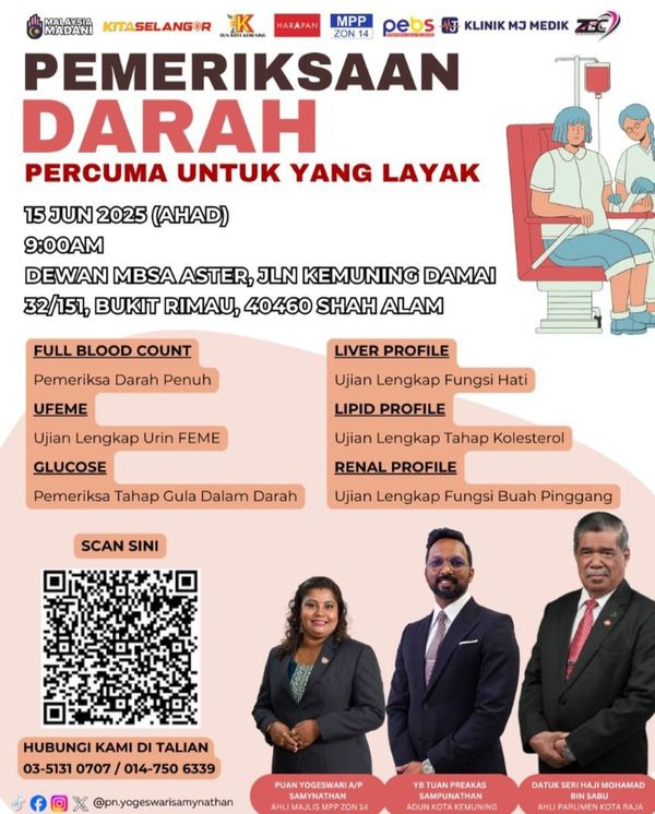 மேல் விபரங்களுக்கு 03-5131 0707 / 014-750 6339 என்ற எண்ணில் தொடர்பு கொள்ளலாம். பதிவு செய்ய போஸ்டரில் உள்ள QR குறியீட்டை ஸ்கேன் செய்யவும்.