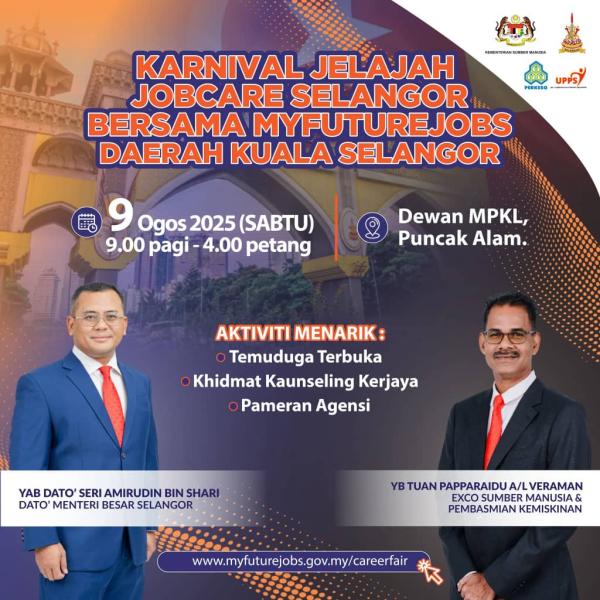 ஷா ஆலம், ஜூலை 30 – எதிர்வரும் சனிக்கிழமை கோலா சிலாங்கூரில் உள்ள எம்.பி.கே.எஸ். புஞ்சாக் ஆலம் மண்டபத்தில் சிலாங்கூர் ஜெலாஜா ஜோப்கேர் கார்னிவல் ஏற்பாடு செய்யப்பட்டுள்ளது.