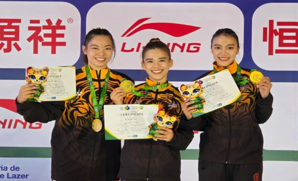 அதாவது, தேசிய வீராங்கனைகளான தான் சியோங் மின், லீ ஜியா ரோங் மற்றும் பாங் புய் ஈ ஆகிய மூவரும் தாங்கள் களம் கண்ட இறுதி போட்டியில், 9.630 புள்ளிகளைப் பெற்று தங்கத்தை கைப்பற்றினர்.