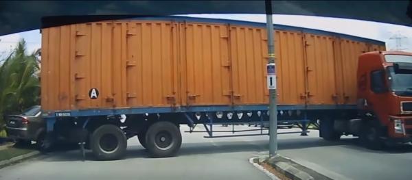 யூ-டர்ன் செய்வதை தடைசெய்யும் எச்சரிகை அடையாள அறிவிப்பு பலகை அச்சாலை சந்திப்பு இடத்தில் இருந்துள்ளது. இருப்பினும், அந்த டிரெய்லர் வளைவதற்கு முயற்சிப்பதை வீடியோ பதிவு தெளிவாகக் காட்டுகிறது.