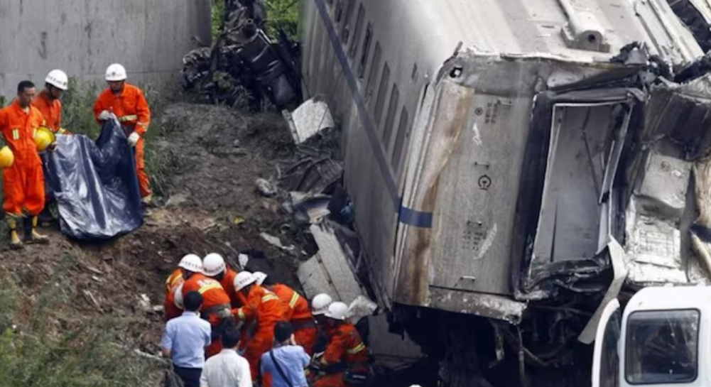 சீனாவின் தென்மேற்கு நகரமான குன்மிங்கில் (Kunminng) உள்ள லோயோங் நகரில் நில நடுக்கத்தை கண்டறிதல் கருவிகளைச் சோதித்து கொண்டிருந்தபோது, இரயில் தண்டவாளத்திலிருந்த தொழிலாளர்கள் மீது மோதியதாக அதிகாரிகள் தெரிவித்தனர்.