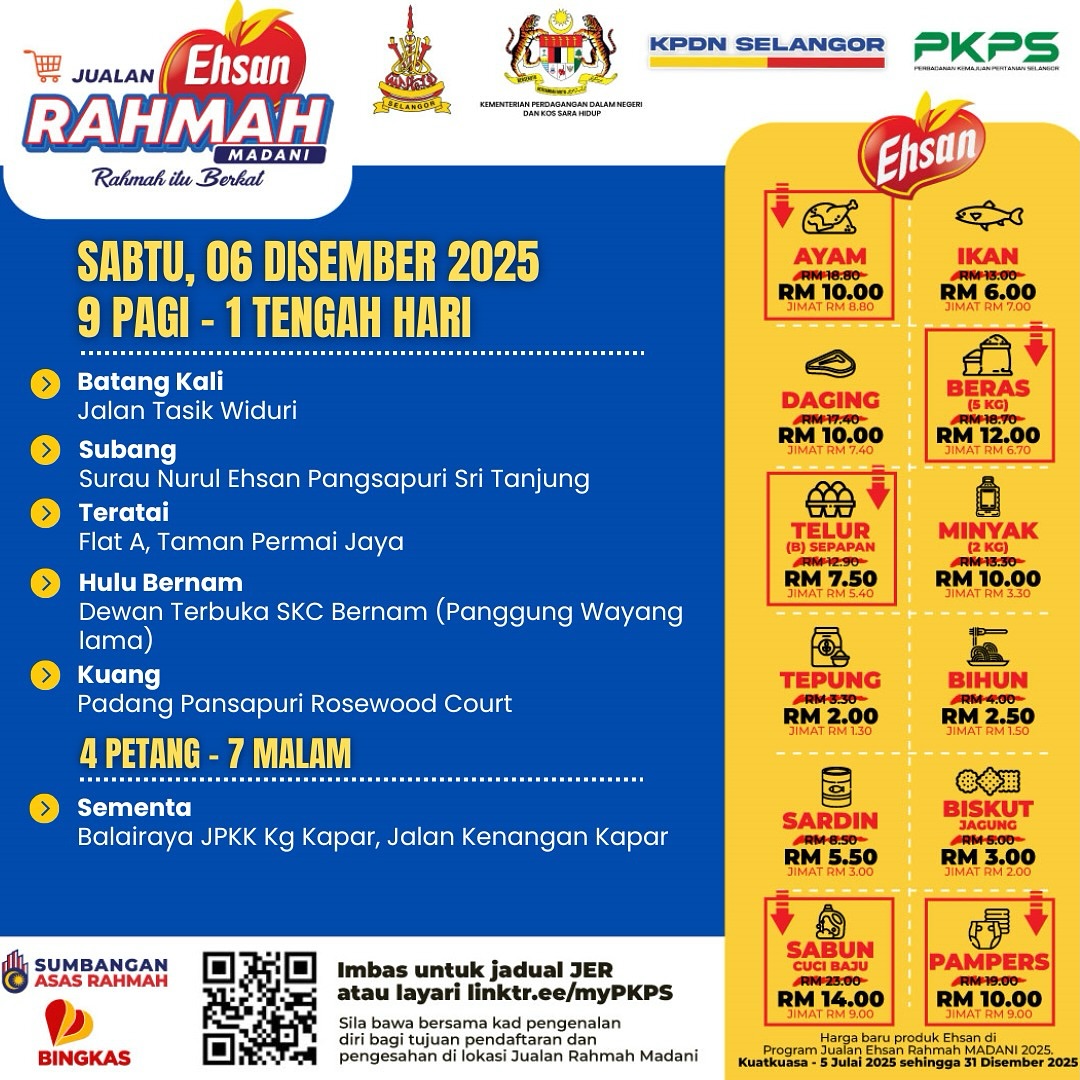 உள்நாட்டு வர்த்தகம் மற்றும் வாழ்க்கை செலவு அமைச்சகத்துடன் இணைந்து சிலாங்கூர் விவசாய மேம்பாட்டு கழகத்தால் (PKPS) இந்த மலிவு விற்பனை நடத்தப்படுகிறது.